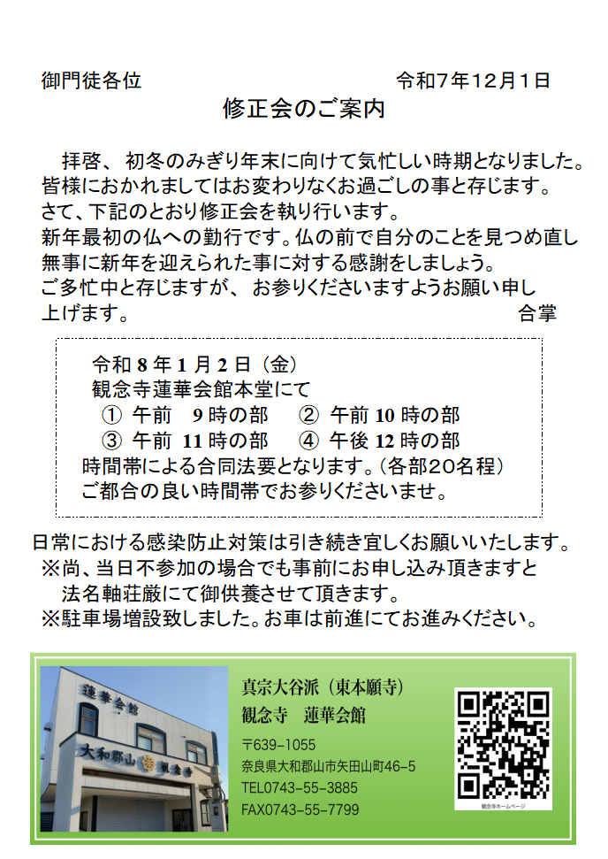 2026年 修正会 ご案内